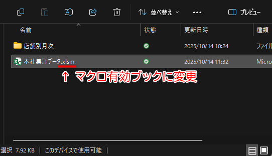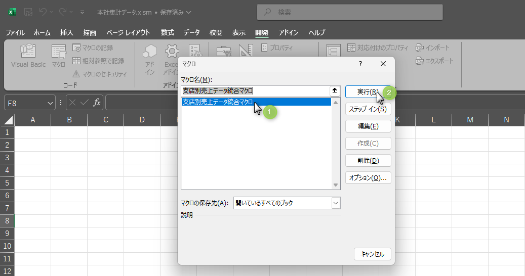 - マクロを格納するExcelファイル(マクロ実行用ブック)を開きます。