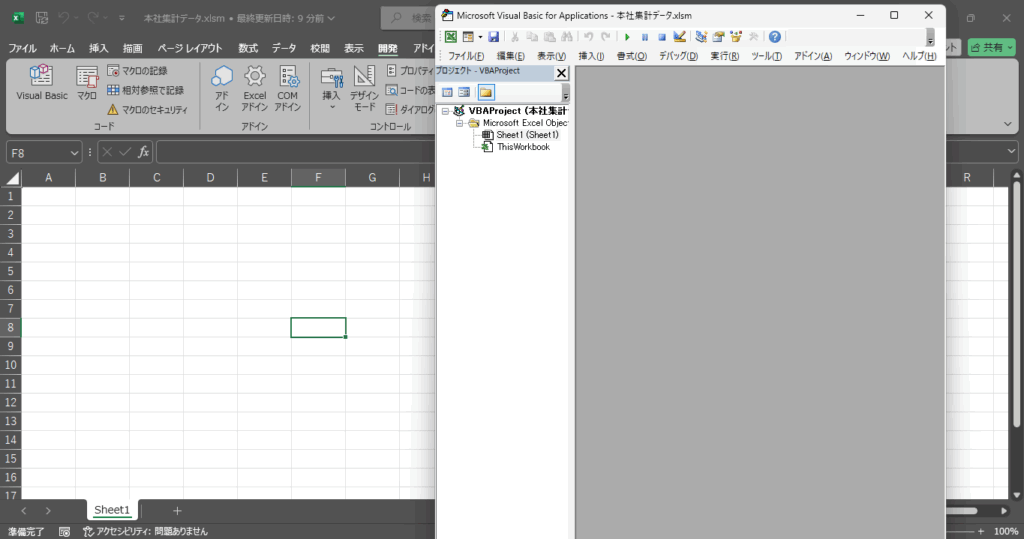 キーを押してVBA(Visual Basic for Applications)エディタを起動します。