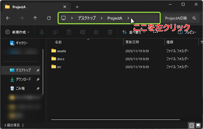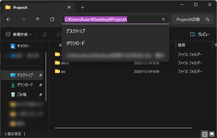1. 手軽に確認したい場合: ファイルエクスプローラー/Finderのナビゲーションペインを利用する。