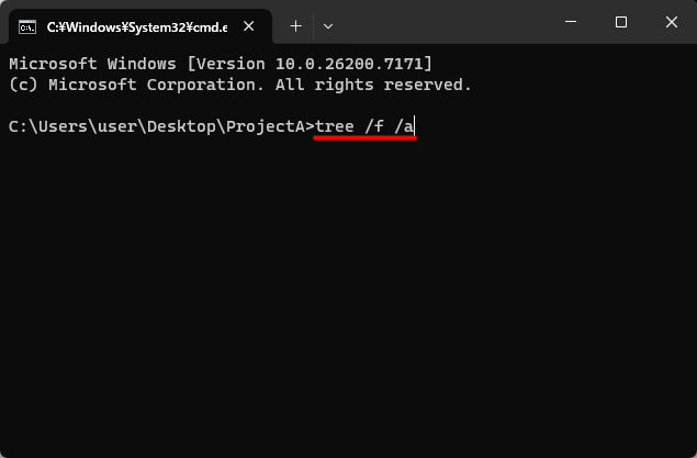 • /f オプションは、ファイル名も含めて表示したい場合に使用します。特定のディレクトリから表示を開始したい場合は、そのディレクトリに移動してから実行するか、パスを指定します。